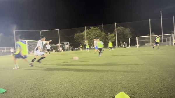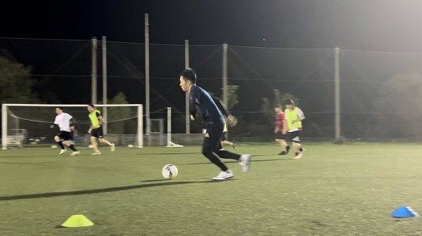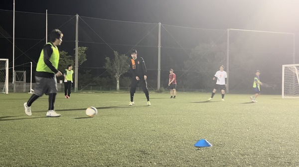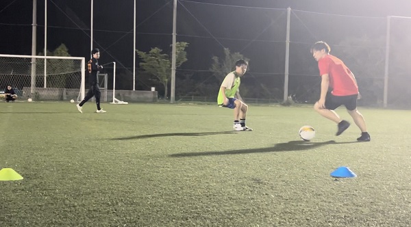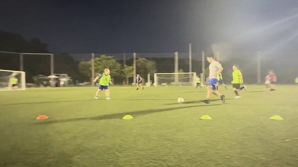 2024年7月20日、禅海ふれあい広場にて社会人チームと練習試合を行いました。 前回よりも参加者が多く、ウォーミングアップのあとミニゲームを繰り返しおこないました。 日中は気温が高かったですが、ウォーミングアップをするときには気温も下がっていて、水分や休憩をとりながら繰り返し練習試合に取り組むことができました。