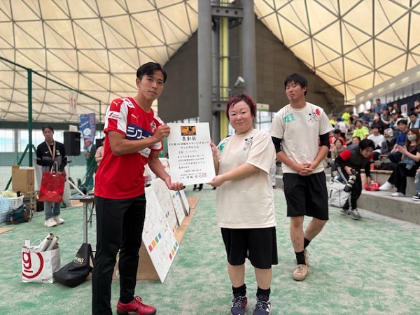 表彰式では、ゲストで来場していたロアッソ熊本の豊田歩選手がプレゼンターとして賞状と賞品を手渡してくれました。