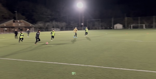 2025年2月22日、大分県中津市の禅海ふれあい広場にて社会人チームと練習試合を行いました。前日にさん・さんF杯に出場した選手も数名参加しました。 今回は人数が少なかったため、最初のミニゲームのみチーム戦を行い、2試合目からはミックスでミニゲームを行いました。一人ひとりがボールに触る回数や走行距離が増え、良いトレーニングになりました。