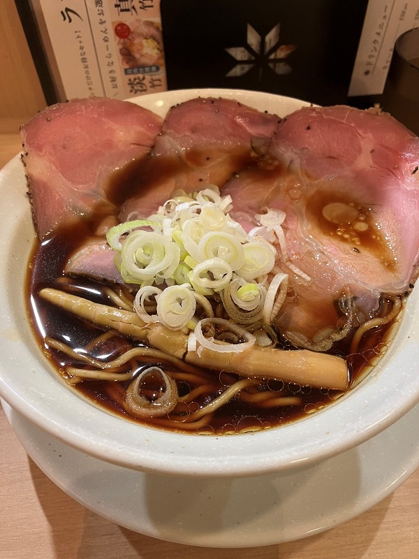 ラーメンの具材や見た目は、他二種類と同じですが、スープの色と味が違うことと、使っている麺が黒竹専用の麺になっています。スープは、醤油のコクがしっかり出ていて、かつ九州の醤油に近い形で、甘みが感じられます(九州の醤油は甘いのが一般的です)。麺は、他二種類と比べると、スープの味を麺と一緒に楽しめるような麺になっています。具材も、他の二種類と同じように、クオリティが高く、濃いスープの味と一緒に楽しめる一杯になっています。